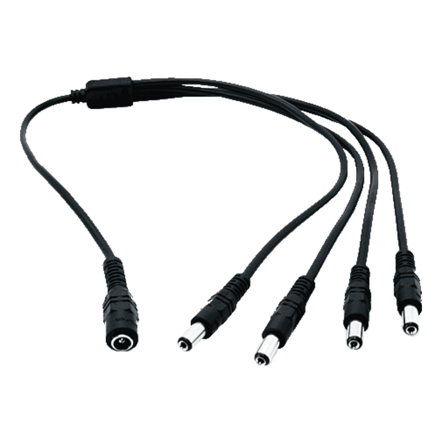 - Connector configuration:1 × 2.1/5.5 mm female inline input to 4 × 2.1/5.5 mm male outputs.