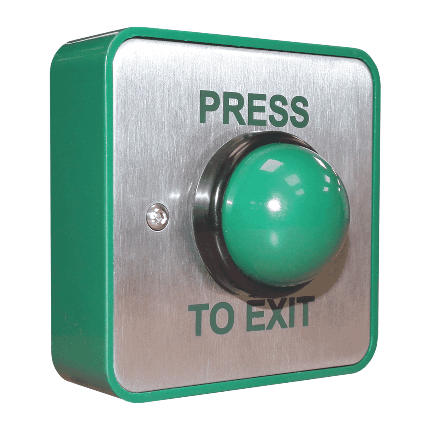 RGL EBGBWC02/PTE — Press-to-Exit, Stainless Steel, Green Domeis a purpose-built press-to-exit (PTE) button designed for access control applications where a clear, durable and easily operated exit actuator is required. With a large green domed actuator, stainless steel faceplate and double-pole momentary contacts, this unit provides a visible and tactile way to release doors, gates or locks in commercial and residential settings. The product balances functional reliability with a straightforward aesthetic, making it suitable for a wide range of egress points.