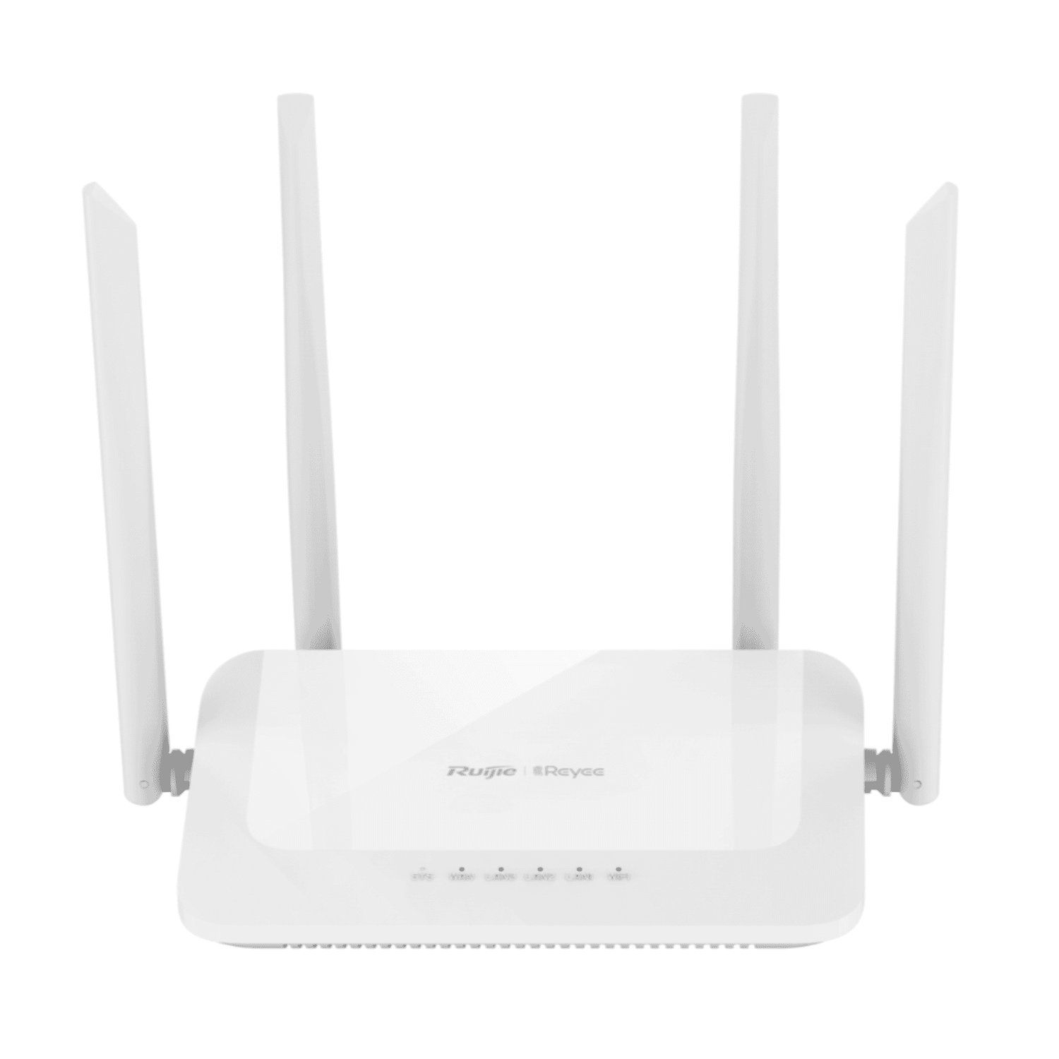 Key highlights include dual‑band radio speeds (up to 300 Mbps on 2.4 GHz and up to 867 Mbps on 5 GHz), four external 5 dBi antennas for improved coverage, Reyee Mesh for easy multi‑unit roaming and cloud/app control via the Reyee app and Ruijie Cloud. One important hardware note: the WAN and LAN ports are 10/100 Mbps, not Gigabit Ethernet — a key consideration depending on your internet plan and local networking needs.